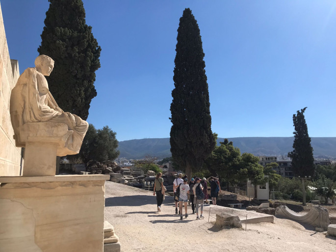 "We hadden een voorspoedige reis en zijn aangekomen in Athene. Zojuist zagen we de Acropolis in het late avondlicht. Prachtig!" Klas 6 maakt een rondreis op de Peloponnesos en start in het fraaie Athene.