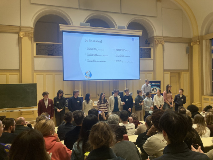 Uit heel het land kwamen op zaterdag 15 november tientallen leerlingen richting het Kamerlingh Onnes gebouw van de Universiteit Leiden, allen bereid om zich die dag in te zetten voor de vijftiende editie van het Max Havelaar Toesprakentoernooi. Zo ook vier toppers van onze school: Eva de Witt, Rafaël van den Enden, Joep Low (voor de tweede keer op rij!) en Moritz Sagel.