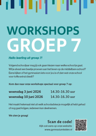 Zit je in groep 7? Dan ben je van harte welkom om deel te nemen aan onze workshops.