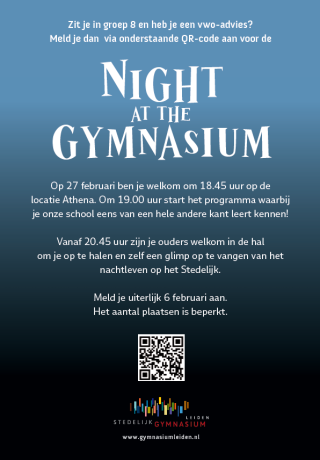 Voor leerlingen uit groep 8 die nog geen genoeg kunnen krijgen van het Stedelijk volgt er 27 februari nog een laatste spannende activiteit: Night at the Gymnasium.