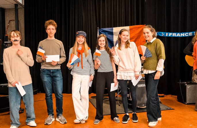 In elke Franse les werden Napoléons uitgedeeld en werd er meegezongen met Aux Champs-Elysées van Joe Dassin. In de grote pauze zong de hele school mee onder begeleiding van een live orkest van leerlingen, docenten en zangeressen waar zelfs meneer Zweep even terug voor naar school is gekomen.
