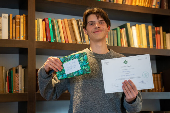 Willem Verhoog hield er een eervolle vermelding op na en won het boek Oneindigheid van zijn toekomstige universitair filosofiedocent Victor Gijsbers. Een zeer geslaagde olympiade dus! In de woorden uit Willems essay: “We shall drink from the glasses of knowledge, you and me.”